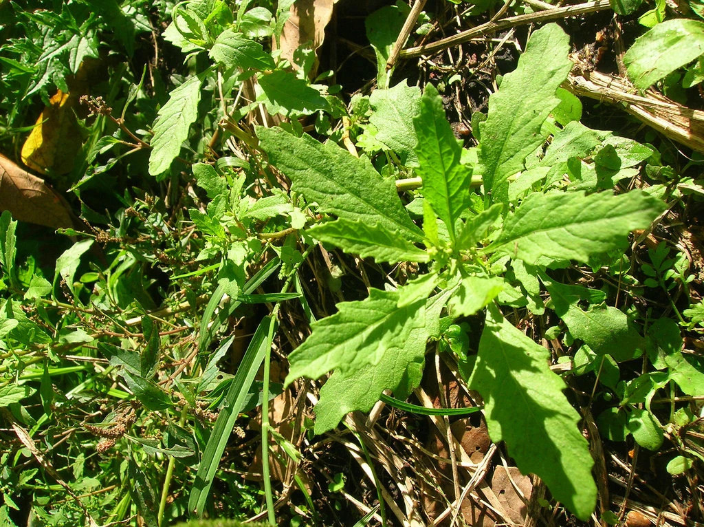 Descripción: Es una planta aromática, perenne, más o menos pubescente, con el tallo usualmente postrado, olor fuerte, de aproximadamente 40 cm de altura; las hojas son oblongo-lanceoladas y serradas, de entre 4 cm de longitud y 1 cm de ancho, con pequeñas flores verdes en panículos terminales densos, cada uno con cinco sépalos; el cáliz persistente circunda al fruto, y las semillas son negras.