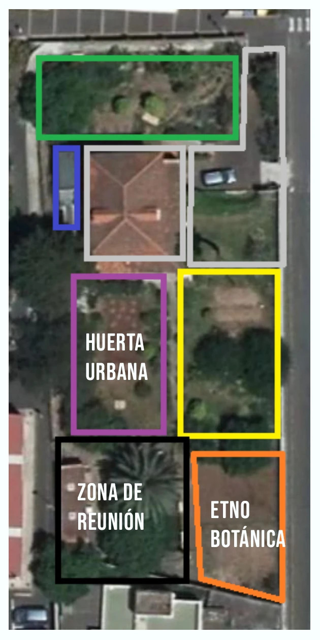 La ubicación del espacio Garoé en el campus de Anchieta de la ULL, es vecina de otros proyectos como el de Bosque Comestible. Se compone de 3 parcelas separadas por caminos y espacios de cemento, en las que se encuentran diversos árboles entre ellos frutales como, limoneros, ciruelos, naranjos aguacateros, nispereros, higueras, además de arboles ornamentales.